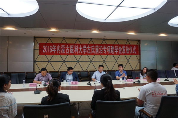 5月27日,内蒙古医科大学“左氏前沿”专项助学金发放仪式在交流中心二号会议室举行。