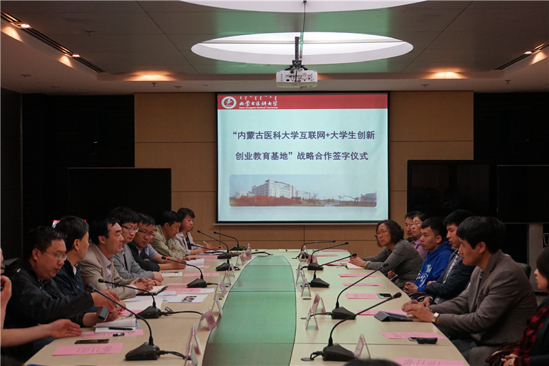 5月17日上午,学校、大连创业工坊共建“内蒙古医科大学‘互联网+’大学生创新创业教育基地”战略合作签字仪式在金山校区交流中心2号会议室举行。