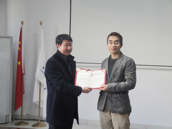 12月10日上午9时,我校在金山校区E座三楼会议室举行特聘教授聘书颁发仪式,校党委委员、基础医学院院长李存保教授代表学校为陈卫东教授颁发特聘教授聘书。