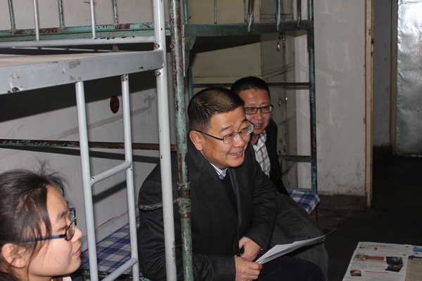 2012年5月29日上午学校党委书记包红亮在学生工作处、后勤管理处主要负责人的陪同下深入金山校区学生公寓进行实地走访。