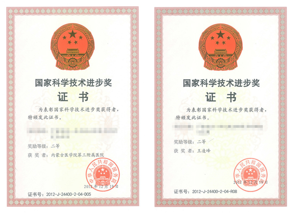 在2013年1月揭晓的“2012年度国家科学技术奖励”中,内蒙古医科大学第三附属医院王凌峰教授参与的一项研究项目荣获国家科技进步二等奖(专用项目,名称省略)。