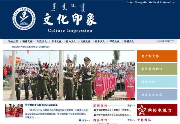 为落实学校十二五文化建设发展规划,体现对内医精神的传承,突出内医特色,通过网络新媒体展现学校文化建设,校党委宣传部经过半年的筹备策划,服务于学校文化建设的“文化印象”网站现正式...