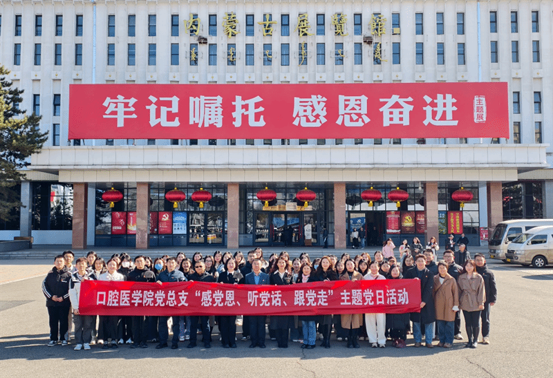3月16日,口腔医学院党总支组织师生党员及部分入党积极分子赴内蒙古展览馆开展“感党恩、听党话、跟党走”融合式党性教育活动。在展览馆宣誓区为13名新发展党员举行庄严的入党宣誓仪式,以党性教育筑牢信仰根基,以铮铮誓言凝聚奋进力量。活动由口腔医学院党总支副书记兼副院长李凤杰主持。