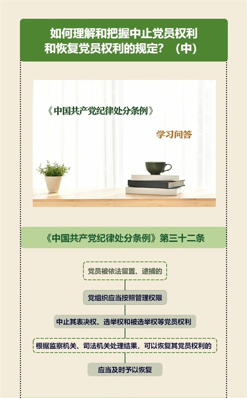 下一篇:纪律处分条例·学习问答丨如何理解和把握中止党员权利和恢复党员权利的规定?(上)