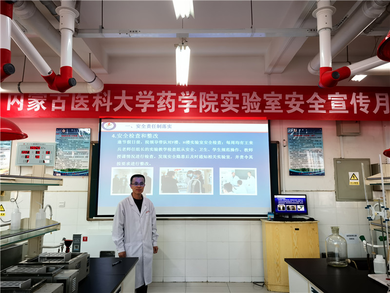 药学基础实验教学中心副主任郭慧卿从安全责任制度落实、实验室安全普及教育、实验室公共安全和下一步工作计划等方面详细介绍了学院的实验室安全工作开展情况。