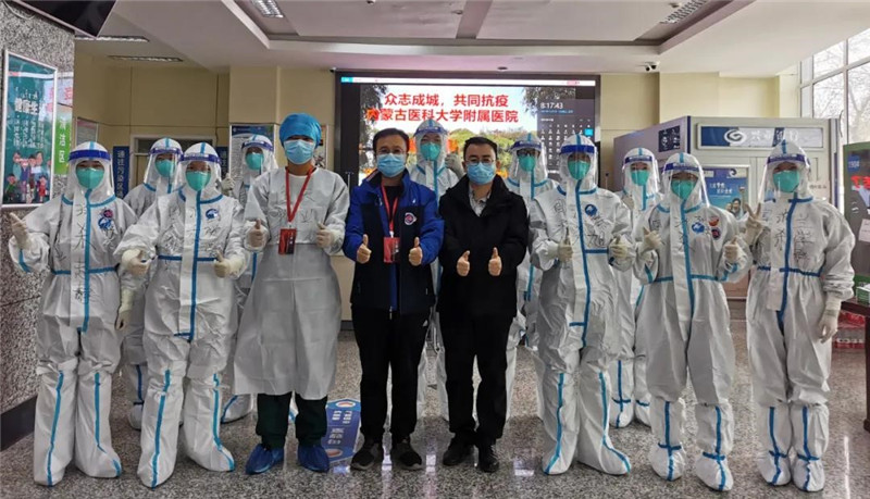 截至11月9日,在内蒙古自治区新冠肺炎定点医院,附属医院医疗队累计救治患者129人,治愈出院71人。附属医院驰援新冠肺炎定点救治医院医疗队共计214人,整建制接管两个病区共计96张床,其中有45名医护人员支援内蒙古自治区人民医院医疗队,10名医护人员支援赤峰医疗队,14名医护人员支援第四医院康复病房,10名医技人员支援第四医院医技组。
