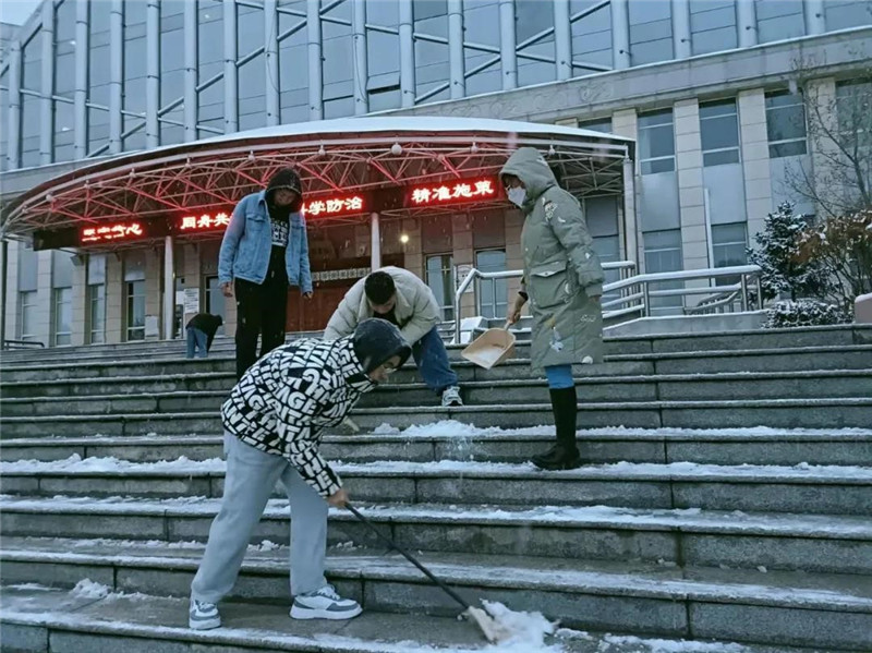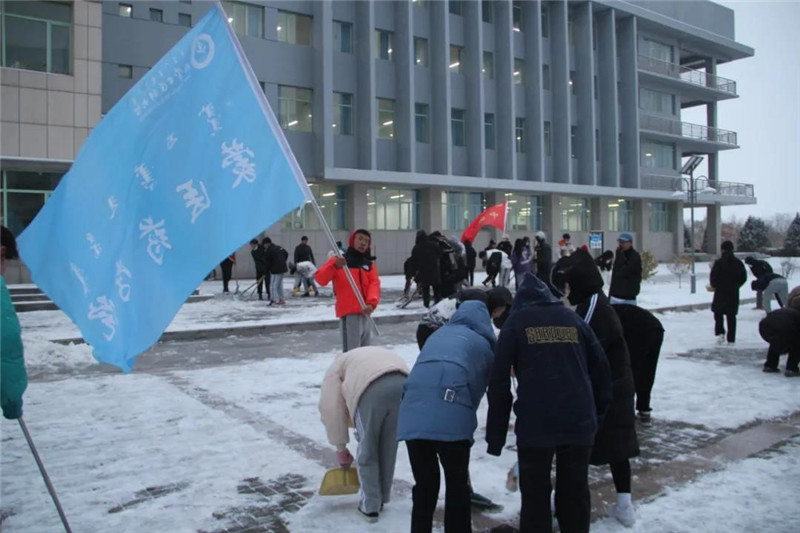 接到扫雪铲冰志愿活动通知后,蒙医药学院和中医学院辅导员、学生党员、青年团员拿上工具,带队分批前往宿舍楼、教学楼、行政楼、图书馆、餐厅路段,进行扫雪、铲冰的工作。他们团结协作,默契配合,清扫积雪。