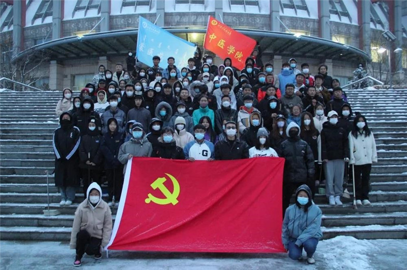2021年的初雪让校园变得银装素裹,美不胜收。然而,伴随着凛冽的寒风和骤降的气温,厚厚的积雪也给校园道路交通安全带来了诸多不便。为充分保障广大师生的出行安全,蒙医药学院与中医学院于11月6日联合展开了“我是共青团员,我帮你”扫雪铲冰志愿服务活动。