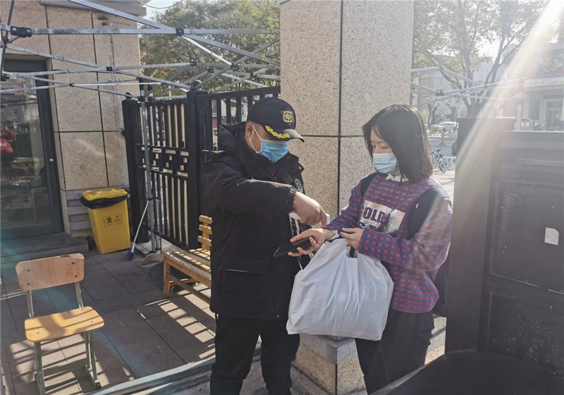 “疫情防控关键时期,外来车辆无法进入校园,请您谅解”“校内人员请出示您的电子通行证、健康码……感谢您的配合”这样的话语每天都要重复很多遍。严格值守,认真查验,瑟瑟寒风击不退他们抗击疫情的决心和斗志,他们用行动坚决筑牢校园安全屏障。