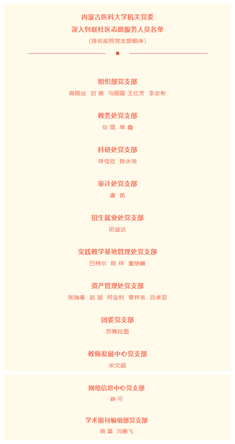 艰难方显勇毅,抗疫呼唤担当。新冠肺炎疫情发生后内蒙古医科大学机关党委充分发挥党组织的先锋模范作用和战斗堡垒作用,在疫情防控工作中顾全大局、率先垂范、冲锋在前,把党史学习教育激发出来的热情转化为做好疫情防控工作的内在动力,以高度的政治责任感做好疫情防控工作,做到关键时刻站得出来、危难关头豁得出去,团结带领干部群众为全面打赢抗击疫情阻击战贡献力量,让党徽在疫情防控一线闪耀。
