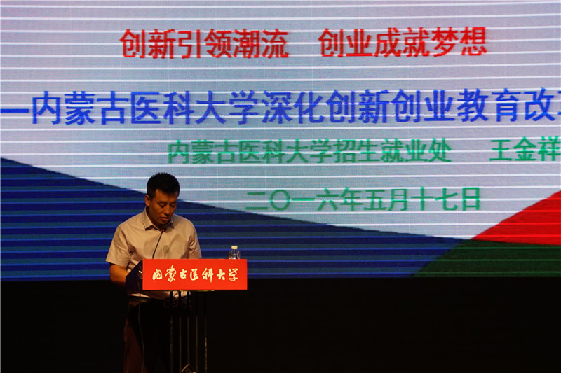 招生就业处就业科王金祥随后做了题为“创新引领潮流 创业成就梦想”的主题发言。