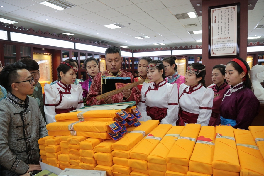 蒙医药博物馆,除了完成收藏展示宣传工作以外,承担着本科生、留学生、研究生的实践教学任务。面向蒙医、蒙药、护理、药剂等专业的学生承担《蒙医文献学》《蒙医经典著作》《蒙医各家学说》《蒙药学》《药用民族植物学》等课程的实践教学任务。