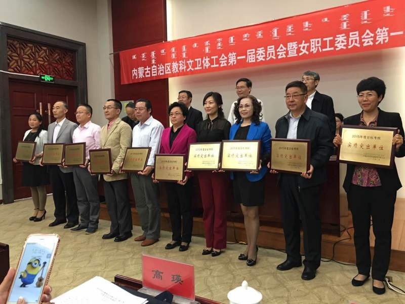 5月26日,内蒙古自治区总工会召开了“内蒙古自治区教科文卫体工会第一届委员会暨女职工委员会第一次全体(扩大)会议”。我校工会荣获 2015年度全区教科文卫体系统工会“工作实绩突出单位”荣誉称号。