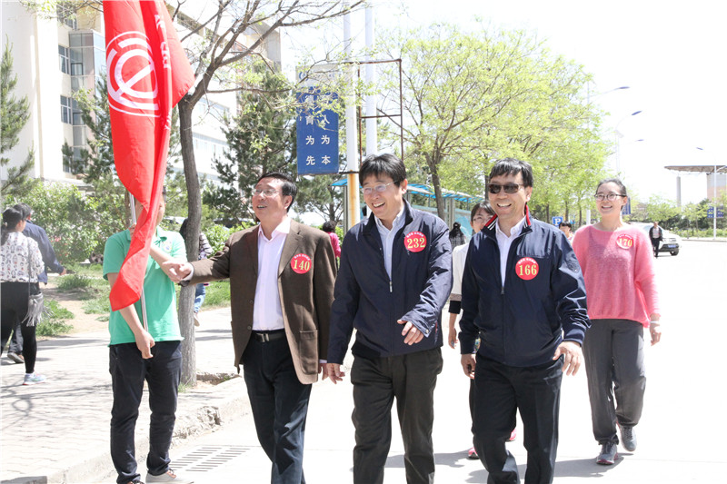 56日上午,学校工会在金山校区举办了第二届教职工“健步走 走向健康”校园行健身活动。学校党委书记白长明同志,党委副书记李建同志,工会主席仲玉霞及各二级单位领导和360多名教职工参加了活动。
