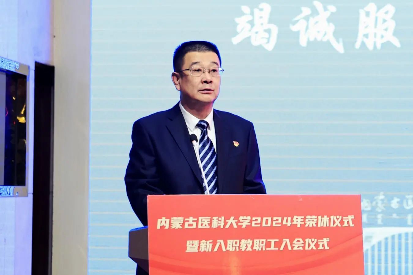 12月24日,内蒙古医科大学2024年荣休仪式暨新入职教职工入会仪式在金山校区举行。学校领导、党委委员,各单位、部门负责人,各工会分会主席、教师代表,2024年荣休教职工代表、新入职职工代表和学生代表参加了仪式。仪式由党委副书记高志祥主持。