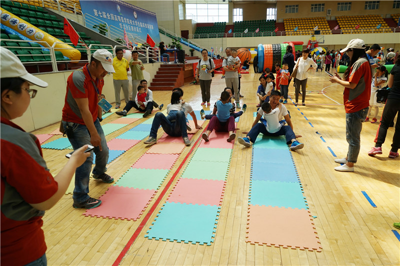 5月28日上午,第二届教职工“小家爱大家 六一”亲子趣味运动会在金山校区文体馆举办。运动会以“和谐、阳光、健康”为主题。共有110名小朋友、150多名教工参加了活动。