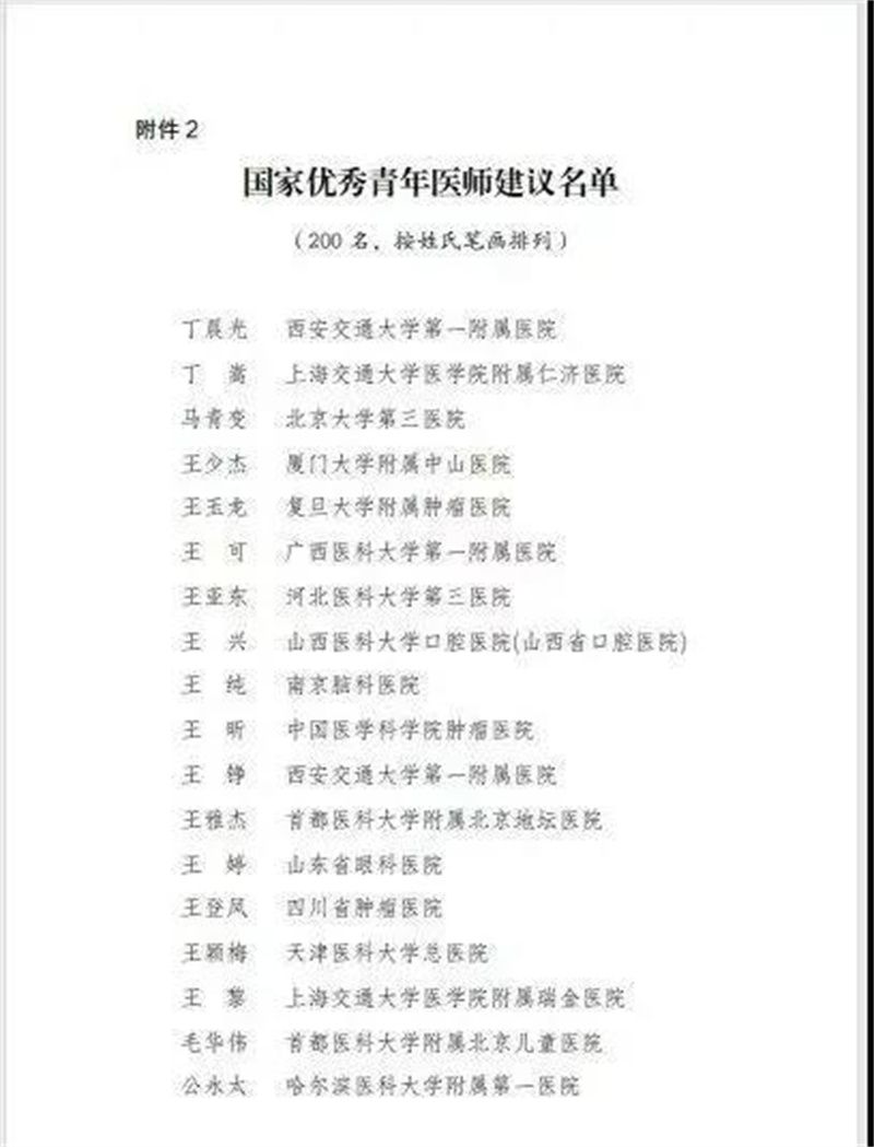 此次评选经过了严格的选拔程序,包括各省市区初选部门推荐、网络函评、会议评审等多个6环节,确定了100名国家杰出医师、200名国家优秀青年医师人选。我校附属医院张国建教授入选国家优秀青年医师人选。