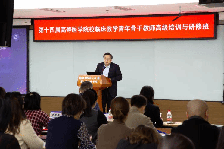 高志祥副书记作开班讲话。他对首都医科大学为本次研修班提供的支持表示感谢,希望全体参训教师能够在思想上、行动上高度重视本次培训,确保高质量完成好各项培训任务,同时,也要强化自身纪律意识,以优良学风确保培训取得实效。今后,学校将进一步加强同首都医科大学的交流学习,并在更高层次和更广领域开展深入合作。