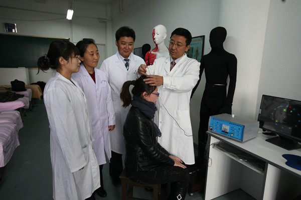 《中国日报》(China daily10217版刊登:蒙医药研究呈现新的跨界合作,图为我校副校长阿古拉用仪器治疗一名患者,该仪器由阿古拉副校长发明并申请专利。