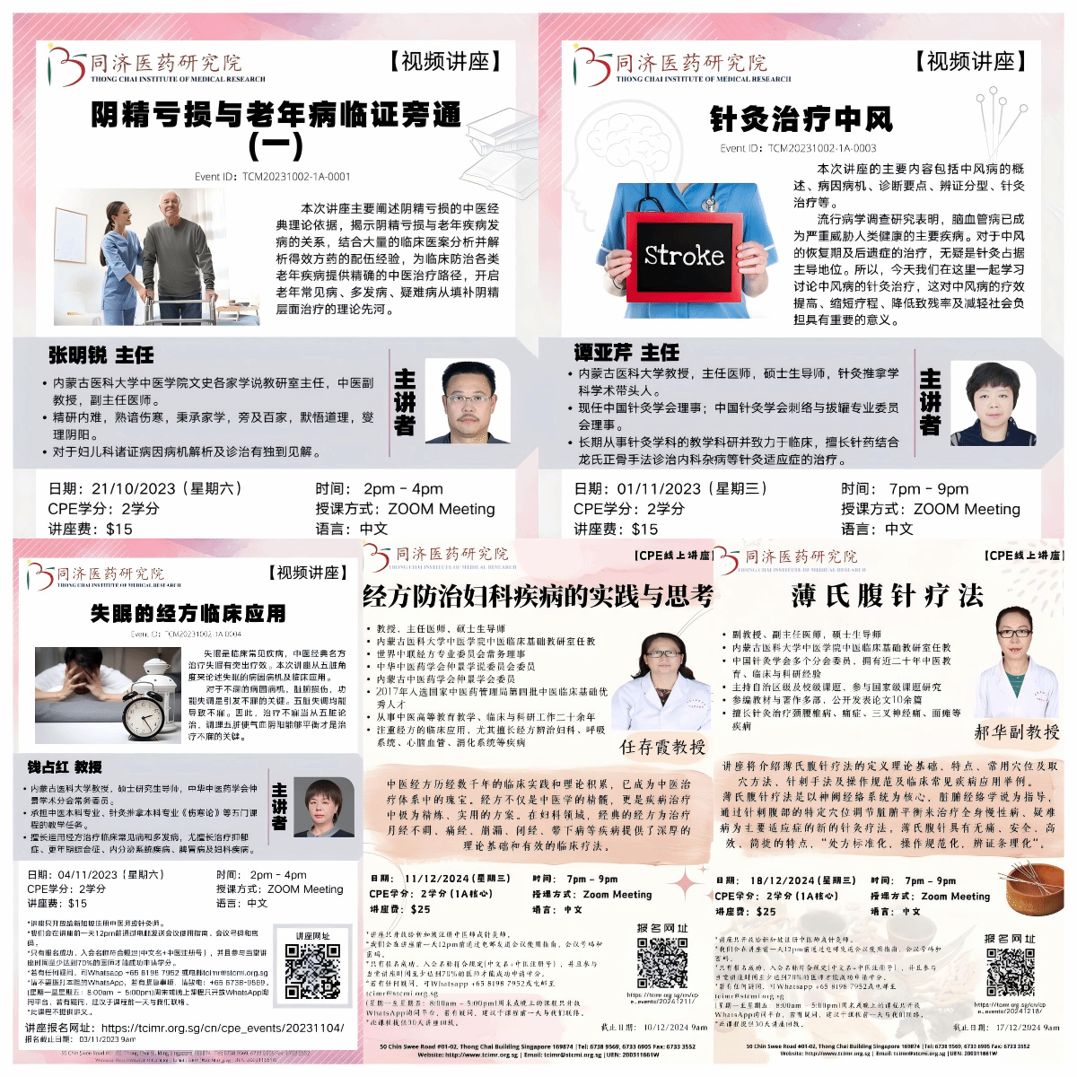 此次系列讲学活动均采用Zoom Meeting线上授课的方式,面向新加坡注册中医师和针灸师开放。五场讲学活动的主题各具特色,涵盖了中医药理论知识的多个领域。学员们纷纷表示,通过本次活动不仅拓宽了知识面,还提升了临床技能水平。