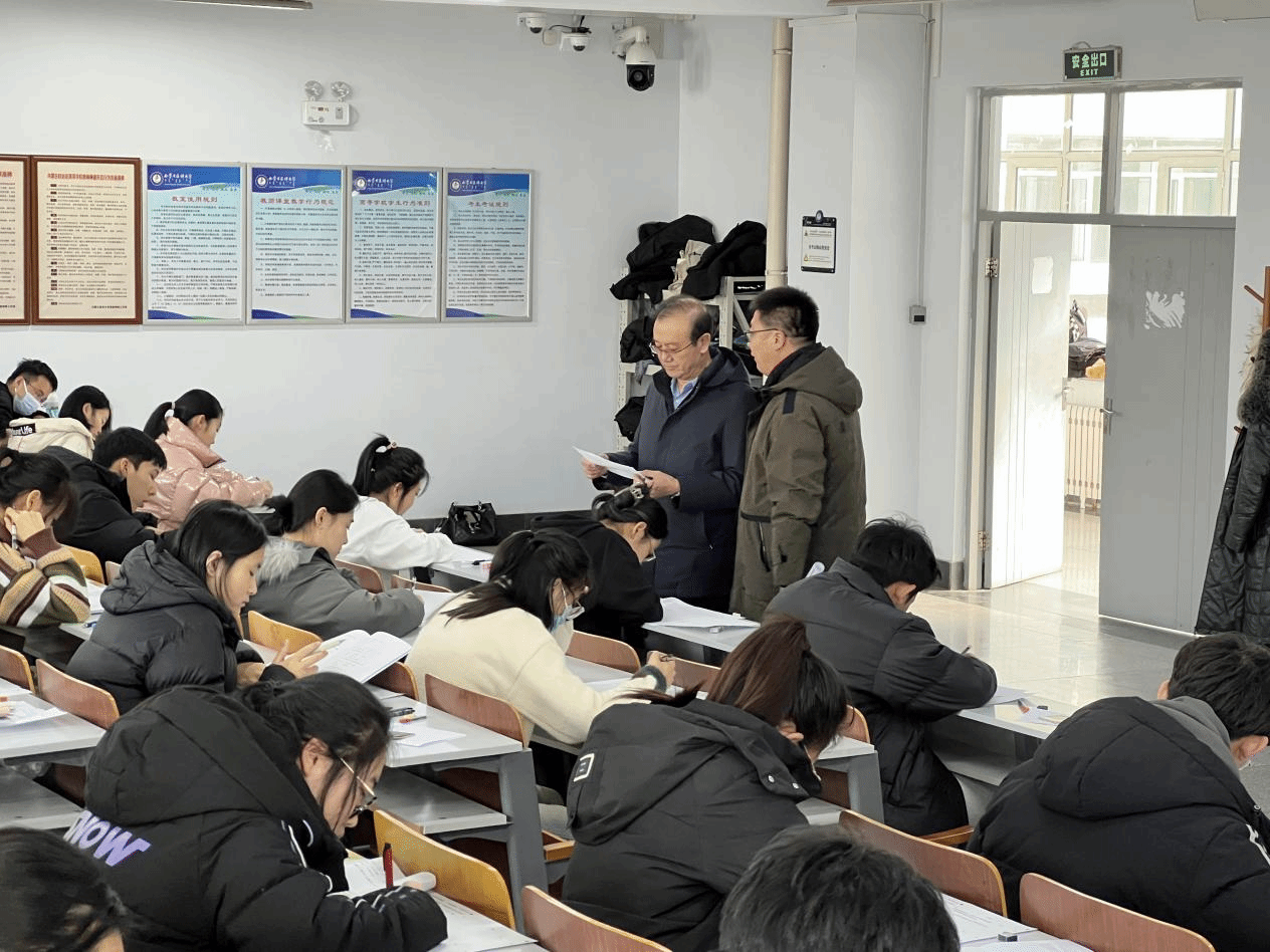 为强化学风建设,严肃考风考纪,2024年12月31日—2025年1月3日,学校党委书记赵云山,党委副书记、校长张晨,党委副书记高志祥,党委委员、副校长薛明明深入各考场进行巡考,教师工作部(教师发展中心)部长(主任)、教务处负责人张海峰及相关工作人员陪同巡考。