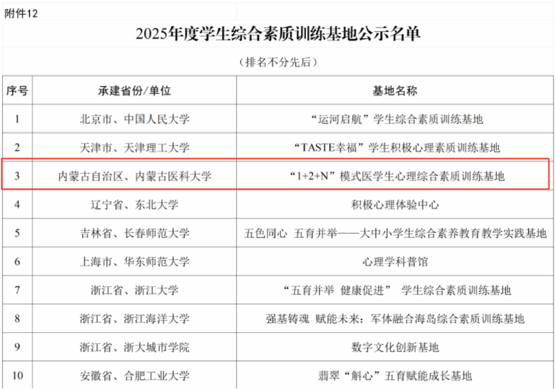 近日,教育部公示了2025年度高校思想政治工作质量提升综合改革与精品建设项目遴选结果,我校获批成为2025年度全国高校示范“一站式”学生社区。同时,“1+2+N”模式医学生心理综合素质训练基地项目成功入选2025年度学生综合素质训练基地名单!
