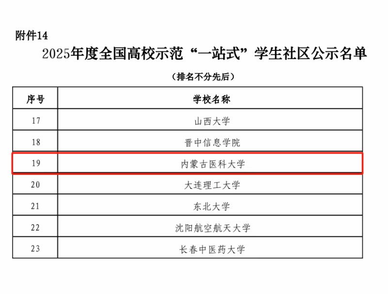 据悉,全国共有100所高校获批成为2025年度全国高校示范“一站式”学生社区,20所高校入选2025年度学生综合素质训练基地。我校为全区唯一入选的院校,这是我校思想政治工作和学生教育管理工作的又一重要突破!