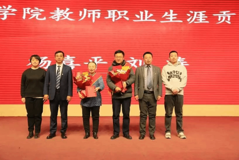 中医学院李林书记和张锁院长共同为“教师职业生涯贡献奖”获奖教师颁发荣誉证书。