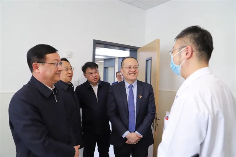 调研过程中,张晨校长一行到医院放疗中心、门诊部等地进行了实地走访,并看望了正在工作中的来自北京大学肿瘤医院的专家。