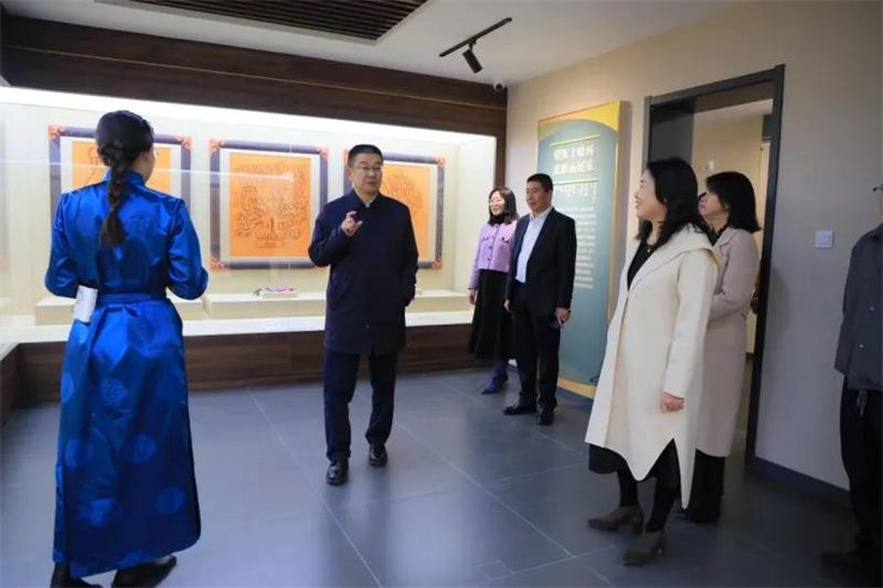 赵云山书记一行走访了博物馆中医药展厅、蒙医药展厅、现代医药展厅,细致查看场馆装修进度、展陈逻辑、安防系统及智慧化设备运行情况。赵云山书记重点询问了文物征集来源、史料整理进度及布展逻辑脉络,对博物馆构建"红色校史为魂、医学特色为核、北疆文化为脉"的叙事体系表示肯定。他指出,要精研“一物一精神、一厅一史诗”的展陈美学,让历史文物“说话”,让文化基因“活化”。