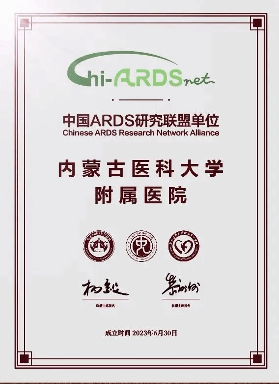 鉴于2024年附属医院重症医学科在中国急性呼吸窘迫综合征研究联盟发起的《ARDS新标准流行病学、治疗及预后研究》项目中的优异表现,经过严格筛选,附属医院重症医学科成为中国急性呼吸窘迫综合征研究联盟的一员。