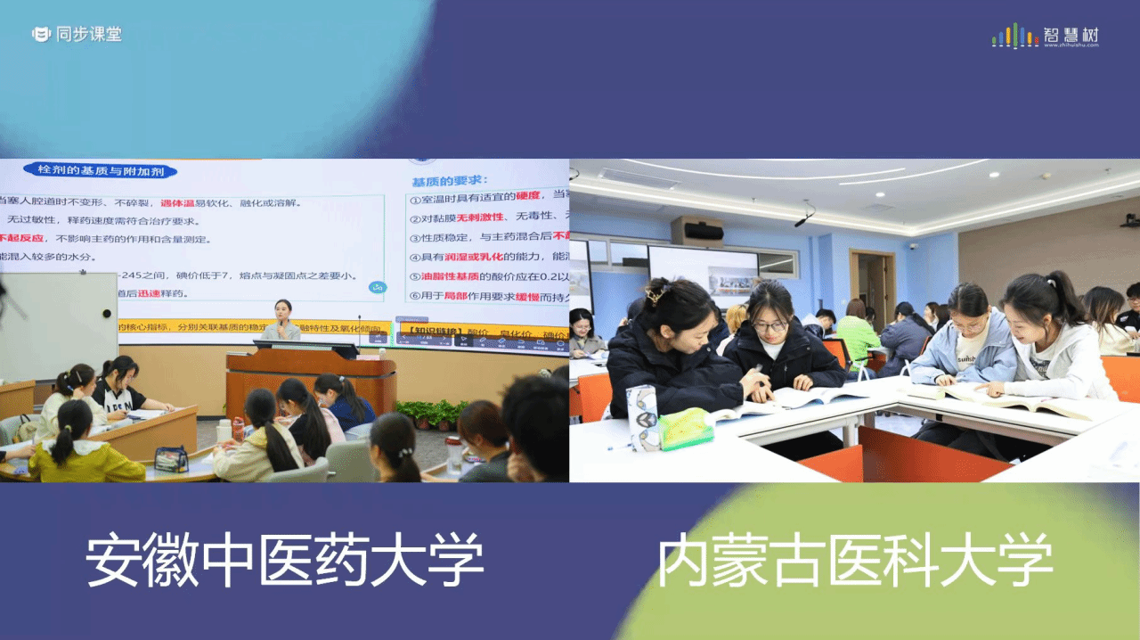 启动仪式后,《中药药剂学》同步课堂正式开课。安徽中医药大学药学院陈娟老师为同学们讲授“栓剂”的相关内容。课堂上,两校师生实时互动,共同探讨专业知识,充分展现了信息技术与教育教学深度融合的成效,实现了两校师生同上一堂课的目标。