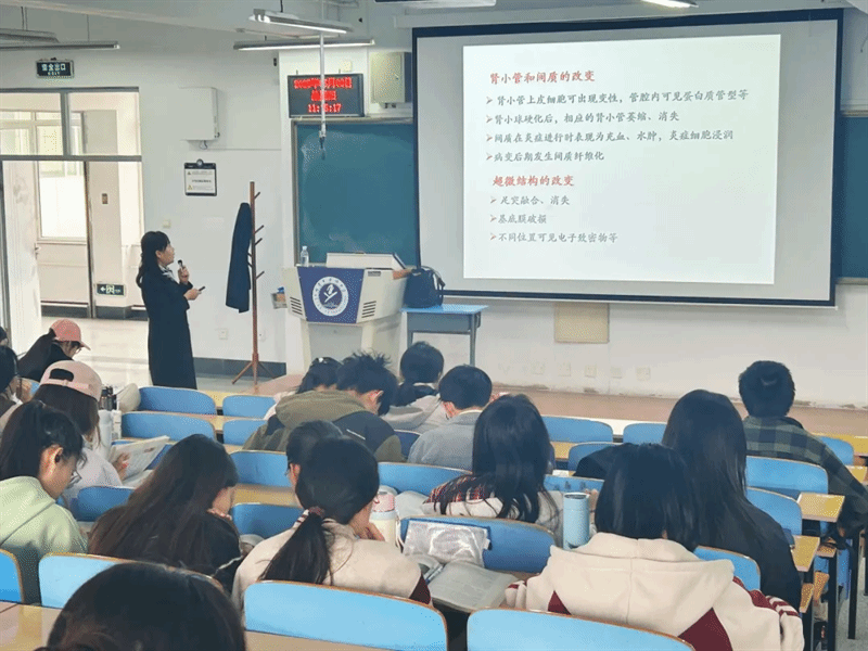在《病理学》课堂上,全俊清书记重点关注了授课教师教学方法的创新性运用和师生互动效果。课后与任课教师交流时,他强调,《病理学》作为医学教育的重要基础课程,要注重理论联系实际,及时将学科最新进展和临床案例融入教学中。