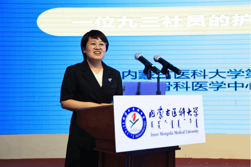 九三学社成员、第二附属医院儿童骨科医学中心护士长张丽华作了题为“承南丁格尔之光,践民主科学之责”的报告。