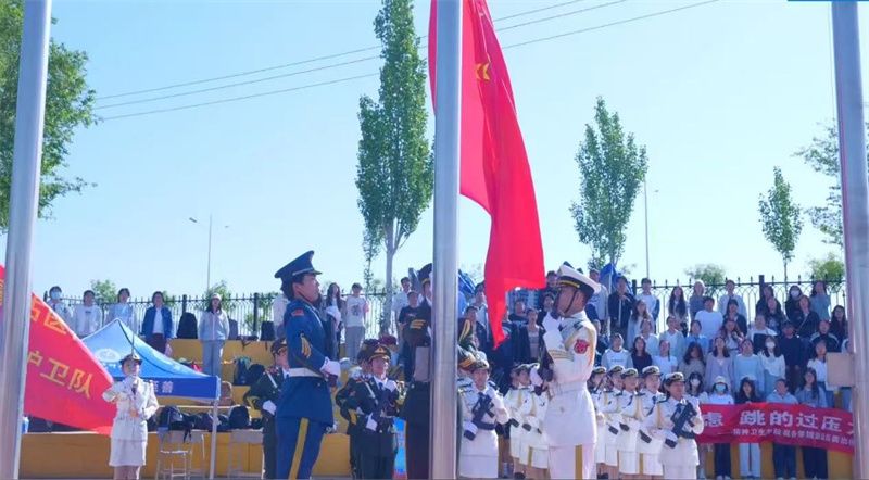 入场式结束后,全体肃立,面向国旗,举行庄严的升国旗、奏唱国歌仪式。