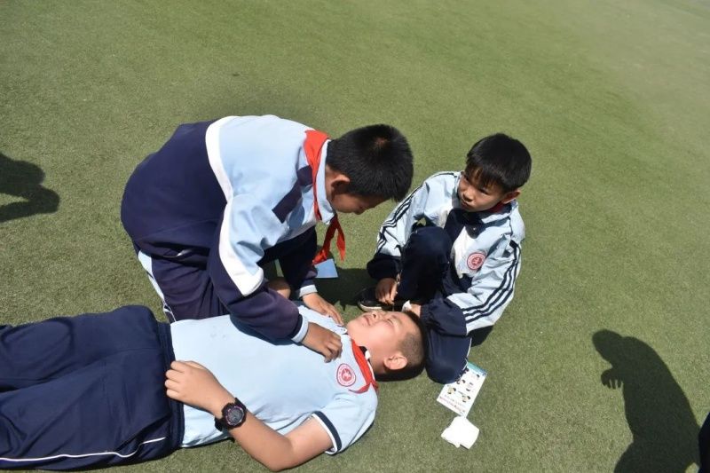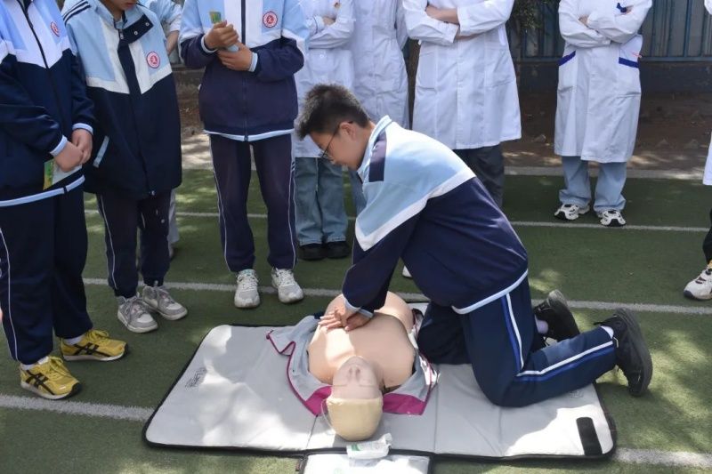 活动现场,中小学生们自发分成小组,饶有兴趣地倾听着大学生们关于心肺复苏实际操作的讲解。理论讲解结束后,孩子们热情高涨,争先恐后地抢着在模拟人身上进行演示。他们稚嫩的小手在模拟人身上认真地按压、吹气,每一个动作都力求精准。那些抢不到操作机会的孩子们,也不愿闲着,纷纷自告奋勇当起了“模拟人”,互相演练所学的急救技能,校园的操场上洋溢着浓厚的学习氛围。