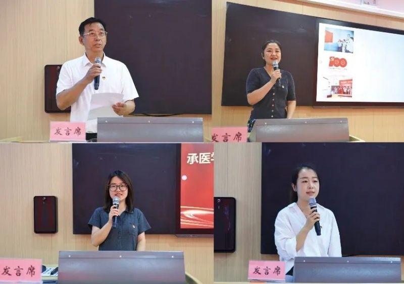 中医学院党委书记李林,药学院党委第五党支部书记、“双带头人”教师党支部书记工作室负责人赵岩,临床医学学生工作党委第三临床医学院本科生党支部书记王淑慧,第二附属医院党委党务工作者、“我的入党故事”获奖作者范慧敏分别在会上做交流发言。