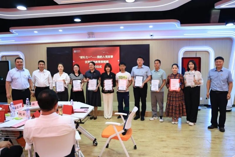 党委组织部、宣传部、统战部负责人为“我的入党故事”获奖单位颁发证书。