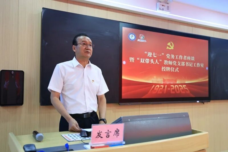 赵云山书记为学校第一批“双带头人”教师党支部书记工作室授牌。第一批“双带头人”教师党支部书记工作室共有5个,分别为: