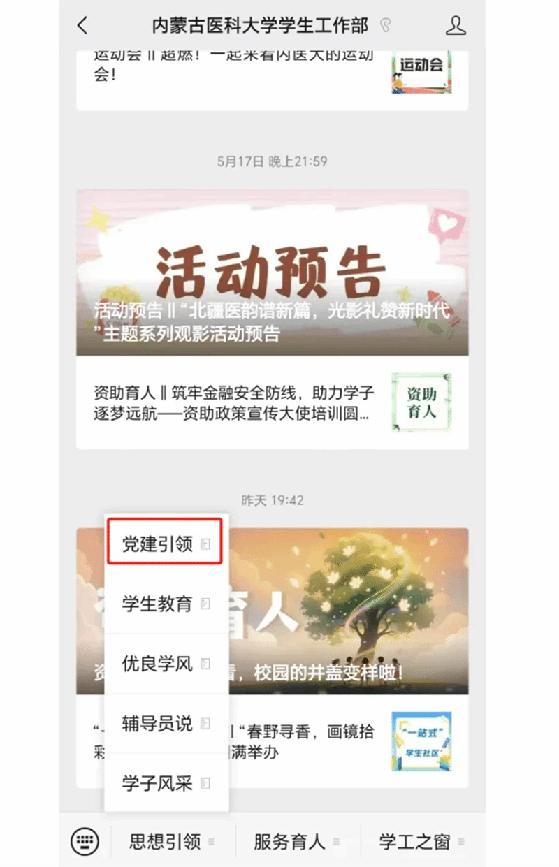 党支部不断健全党组织和党员在网络空间发挥作用机制,以党建引领筑牢发声阵地,营造清朗网络空间。对学生工作部网站、微信公众号进行全面整合优化升级,改革栏目设置,创新内容规划,打造覆盖3.1万人的“内蒙古医科大学学生工作部”微信公众号,设置“党建引领”“主题教育”“学子风采”“辅导员说”“有问必答”等专栏,讲好学生身边的故事,唱响网络主旋律,引导师生深刻认识时代使命与责任担当。2024年共推送文章546篇,总阅读量突破100万,入选“全国高校思想政治工作200个最受欢迎公众号”。积极推进易班建设,牢牢掌握网络意识形态工作主导权,连续四年获得“内蒙古自治区优秀易班共建高校”荣誉,《“易”学“易”用,推进“五育并举”数字化新样态》荣获全国优秀易班共建案例。