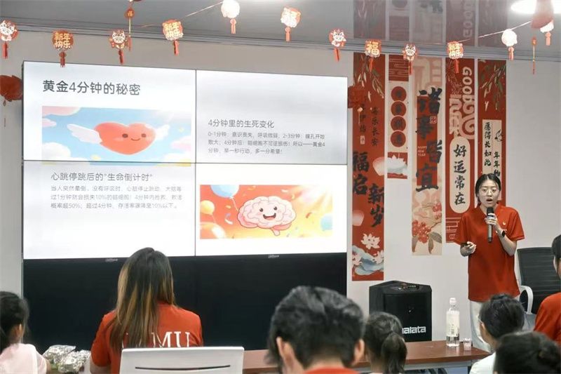 活动期间,健康宣教与推普工作同步进行。在科右中旗巴彦淖尔苏木及科右中旗党群服务中心伊和苏莫社区,志愿者针对布鲁氏菌病防控、海姆利克急救法、触电、动物咬伤等常见的自救互救知识开展健康宣教,让日常医学知识走进生活、走进农牧民群众之中。在推普课堂上,志愿者与儿童结对学习,共同朗诵《你要写中国》,铸牢中华民族共同体意识在经典诵读中入脑入心。