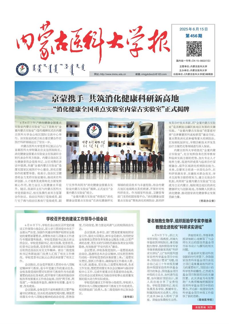 ❖京蒙携手 共筑消化健康科研新高地——“消化健康全国重点实验室内蒙古实验室”正式揭牌