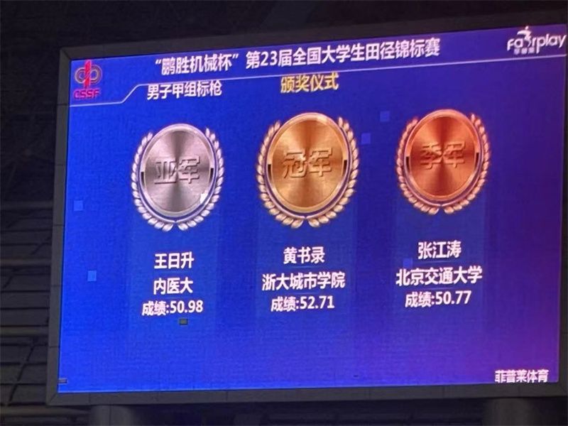 8月10日,第23届全国大学生田径锦标赛在黄石奥林匹克体育中心体育场正式开赛。比赛首日,我校内蒙古临床医学院王日升同学在男子甲组标枪决赛中以50.98米的成绩斩获银牌!