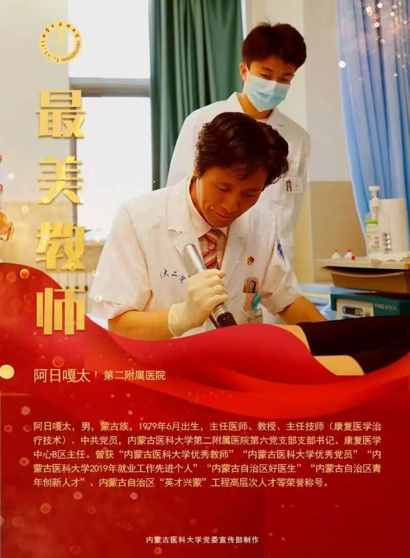 参加教学工作19年,阿日嘎太老师先后承担了学校蒙医传统疗法方向硕士研究生、博士研究生和康复治疗学本科班的专业课程。 2017年,作为康复教研室主任和康复治疗学专业负责人,完成了教育部本科教学水平评估相关工作,培养了多名优秀的康复治疗师。作为硕士研究生导师,共计招生18名硕士研究生。荣获学校青年教师大赛优秀奖1项,学校第二附属医院青年教师大赛二等奖 1 项。
