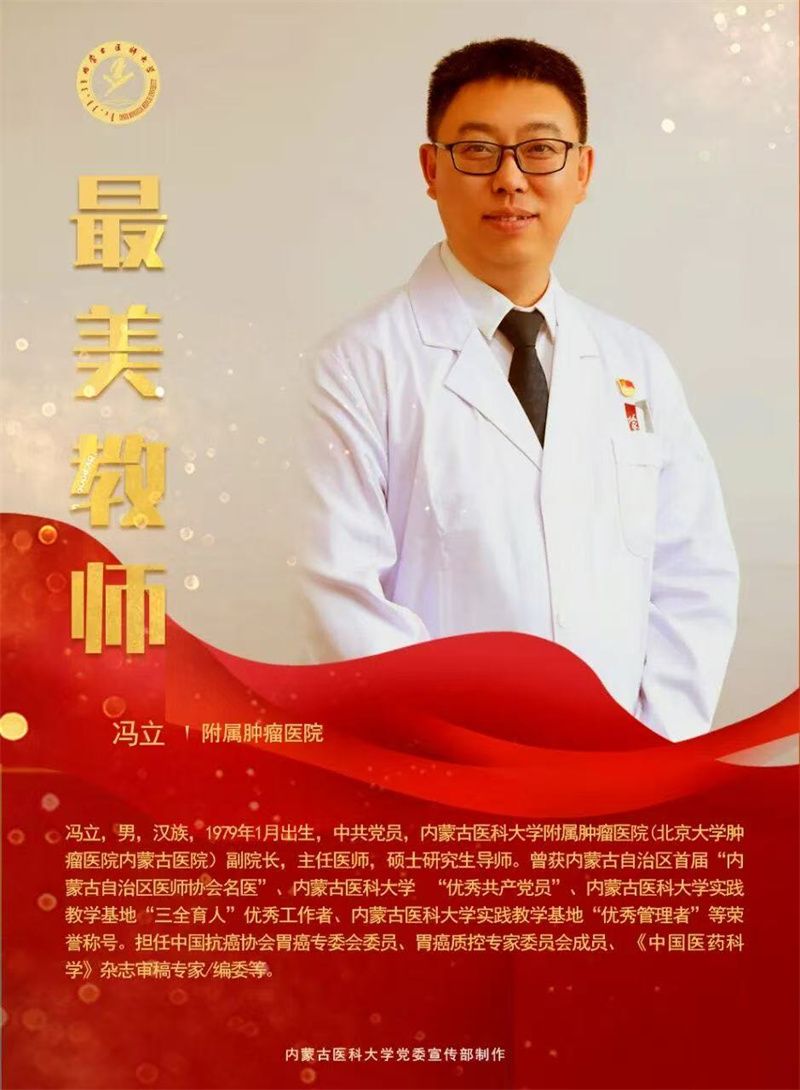 他师从内蒙古医科大学外科学董培德教授,秉承老师遗志“在发展专业的同时,一定要将手艺传下去”。他把老一辈师者的教诲铭记心上,把发展胃肠肿瘤外科学专业作为毕生事业,在熟练掌握外科腹腔镜技术的同时学习手术机器人的操作,教学相长。2022年,当选内蒙古自治区首届“内蒙古自治区医师协会名医”;2023年,因在实践教学管理中的突出表现,获评内蒙古医科大学实践教学基地优秀管理者。面对荣誉,他始终将其视为“对育人初心的肯定”,而非终点。未来,他将继续以肿瘤防治临床需求为教学导向,以科研创新为教学动力,坚守教书育人的初心,续写更多温暖而有力的篇章。