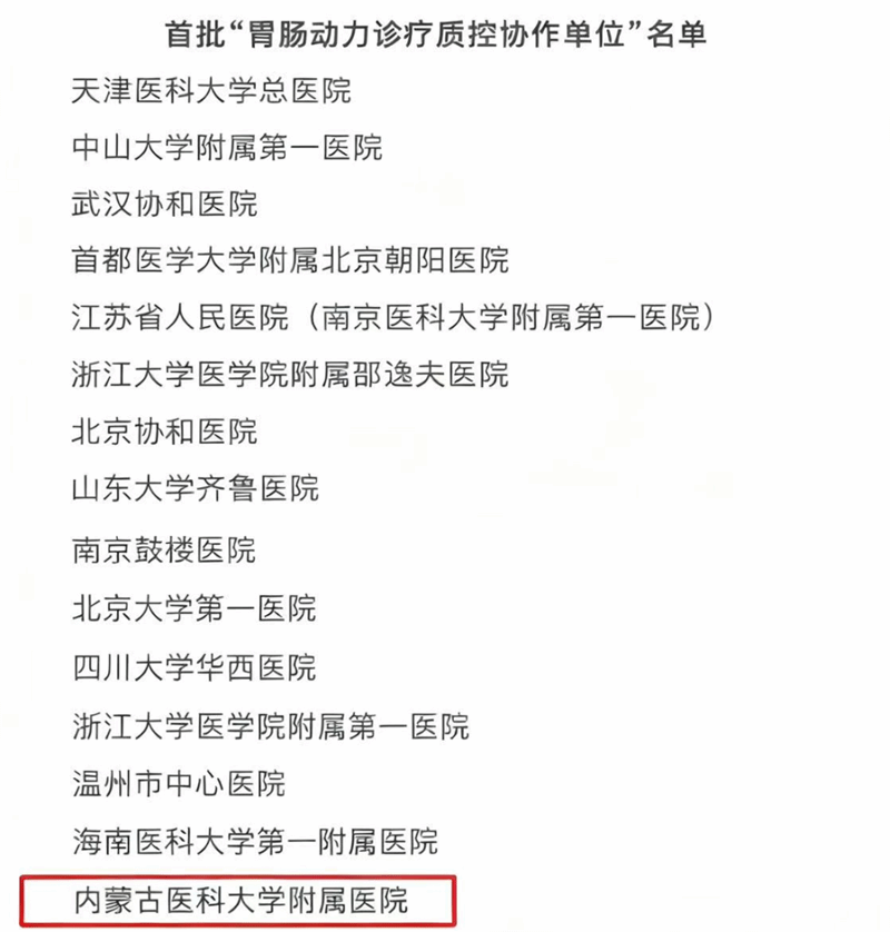 近日,由中华医学会消化病学分会三大协作组(胃肠动力学组、功能性胃肠病协作组、食管疾病协作组)顶尖专家参与评审的首届全国胃肠动力诊疗质控评估协作单位评审会在广州召开。我校附属医院消化内科从全国57家申报医院中脱颖而出,成功跻身全国首批23家“胃肠动力诊疗质控协作单位”行列。